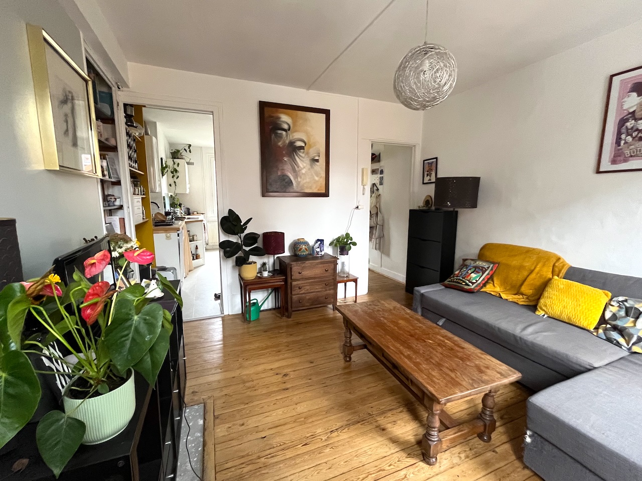 Une beau séjour, un dégagement et une grande cuisine.
